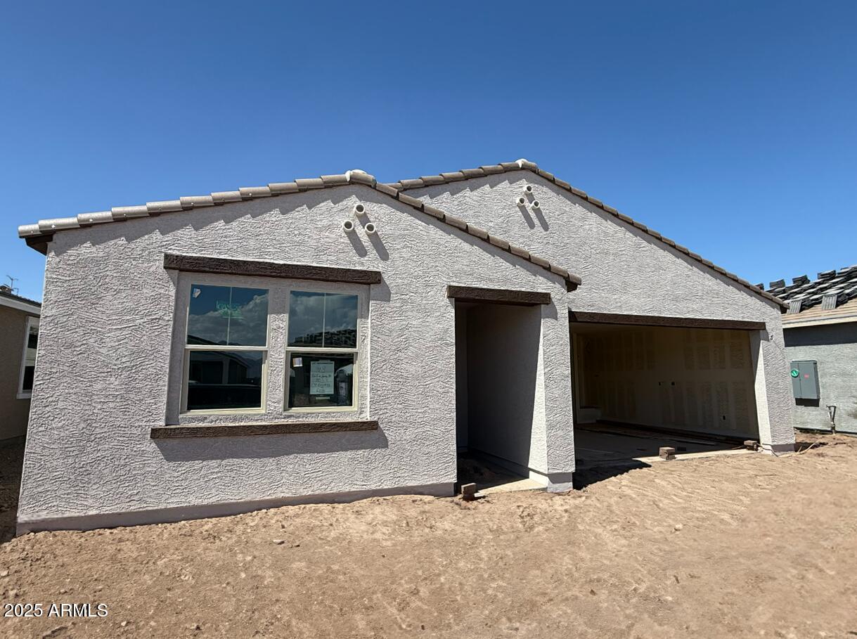This stunning Larkspur floor plan offers 1,953 square feet of living space with 3 bedrooms, 2.5 baths, and a 2-car garage with a garage door opener. When you walk up to the home you will notice the beautiful paver driveway and walkway leading you into a stunning space. The home features a classic never aging Spanish exterior. Large 8-foot interior doors throughout. The kitchen showcases a Artisan 2.0 interior collection with a beautiful neutral backsplash, Gray 42-inch upper cabinets, stainless steel appliances, and silver falls quartz countertops with Gun metal hardware. The home also includes 6x24 wood-look plank tile flooring, white sand quartz and oval sinks in the bathrooms, and light gray carpeting in the bedrooms. Enjoy a 4-panel center sliding glass door, 2-inch white horizontal faux-wood blinds, a water softener loop system. Additional conveniences include an electric washer and dryer and pre-wiring for pendant lights in the kitchen.